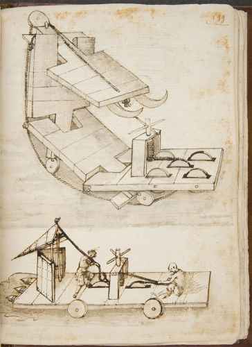 Als Lehrling von Andrea del Verrocchio war Leonardo an Projekten wie der Vollendung der Kuppel des Florentiner Doms Santa Maria del Fiore beteiligt. Auf diese Weise eignete er sich die von Filippo Brunelleschi und anderen Künstler-Ingenieuren wie Mariano di Jacopo (genannt Taccola) und Lorenzo Ghiberti begründete Tradition technischen Fachwissens an. Wahrscheinlich hat er zu diesem Zweck auch Notizbücher und Manuskripte mit Zeichnungen und Konstruktionsplänen von Maschinen studiert.