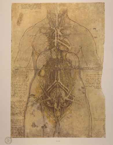 At least up until 1508, for Leonardo, macrocosm and microcosm were closely bound together. Among his books on the cosmos and the world we find the Sphere by John of Holywood, and Ptolemy’s Cosmography. This macrocosmic research was directly linked to his study of the microcosm: the human body, the “lesser world” about which Leonardo planned to create an anatomical atlas, with plates similar to those in Ptolemy’s book on the cosmos.