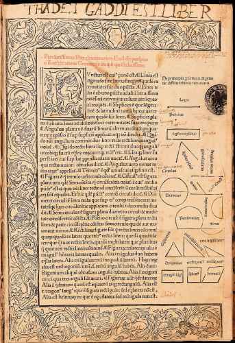 莱昂纳多在1496年到达米兰之后,卢卡·帕乔利修士就成为他的朋友,以及数学和几何领域内的老师。卢卡·帕乔利帮助他理解欧几里得的翻译成白话文的《几何原本》,而且莱昂纳多也参与了卢卡·帕乔利的《神圣比例》(为其绘制了奇妙的多面体)和新版的《几何原本》。