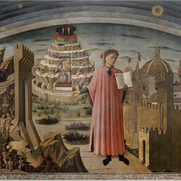 The voyage from Hell to the Empyrean is an expiatory journey that Dante undertakes in his lifetime in the afterworld. In so doing, he presents a new image of the world, in which the spiritual and physical dimensions merge into a single, credible cosmographic reality. In a masterful combination of science and poetry, Dante conceived the Divina Commedia as the cosmographic account of human history, of knowledge pursued by man in accordance with divine will, and of the relationship between man and God—which was essential for a medieval Christian. While consistent with the cosmographic tradition of his time, Dante’s world transcends reality and connects terrestrial life to eternal life. For this, it models itself on the certainties of the supreme science, Theology, the “Divine Science” that “because of the supreme certainty of its subject, which is God,” is absolute and unchallengeable (Convivio II xiv 19-21).