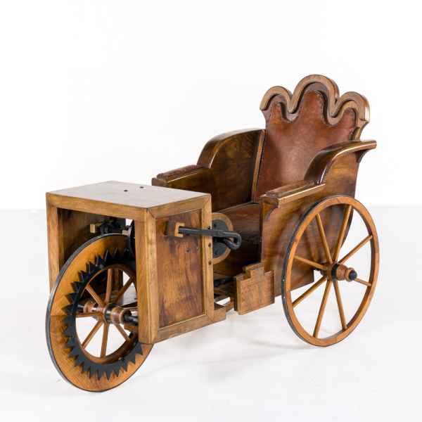 Paralizzato alle gambe per una terribile caduta da bambino, Stephan Farfler (1633-1689) desiderava disporre di un mezzo di trasporto per potersi muovere in autonomia. Da adulto apprese l’arte dell’orologeria e, utilizzando quei meccanismi, riuscì a creare un carretto a tre ruote mosso da una manovella azionata dal guidatore. Di fatto, è il primo veicolo semovente della storia costruito per il trasporto umano, progettato non per fare spettacolo, ma per la sua utilità pratica. Dal punto di vista tecnico, la soluzione del moto rotatorio impresso dalla manovella per trasmettere la forza motrice alle ruote costituiva una soluzione di eccezionale importanza, che ritroveremo nell’Ottocento nei pedali della bicicletta.